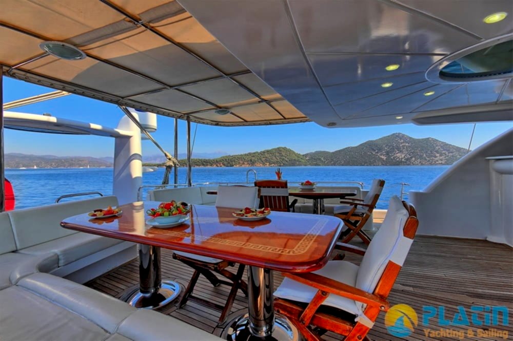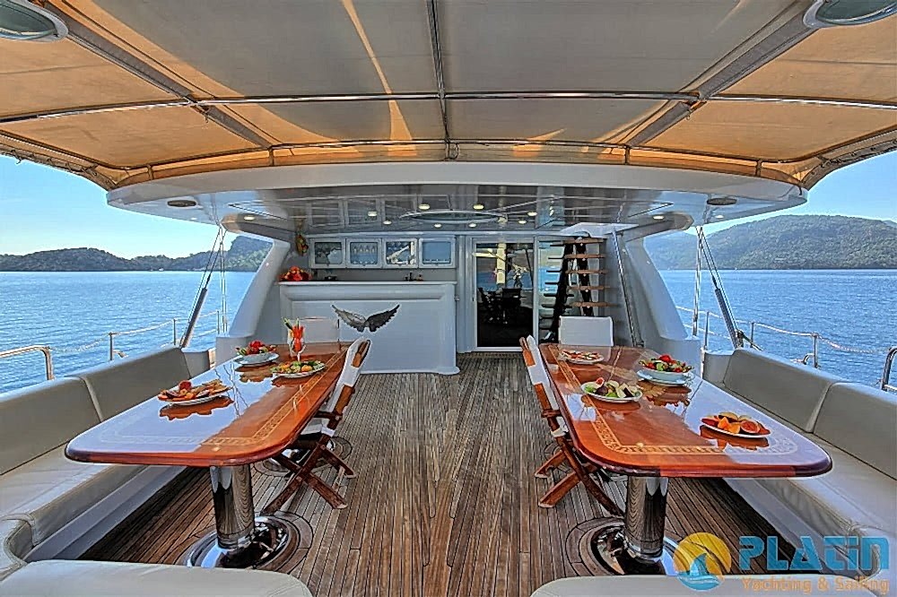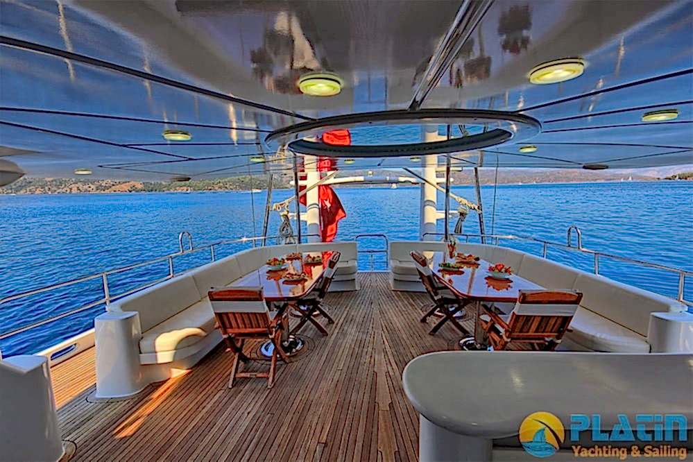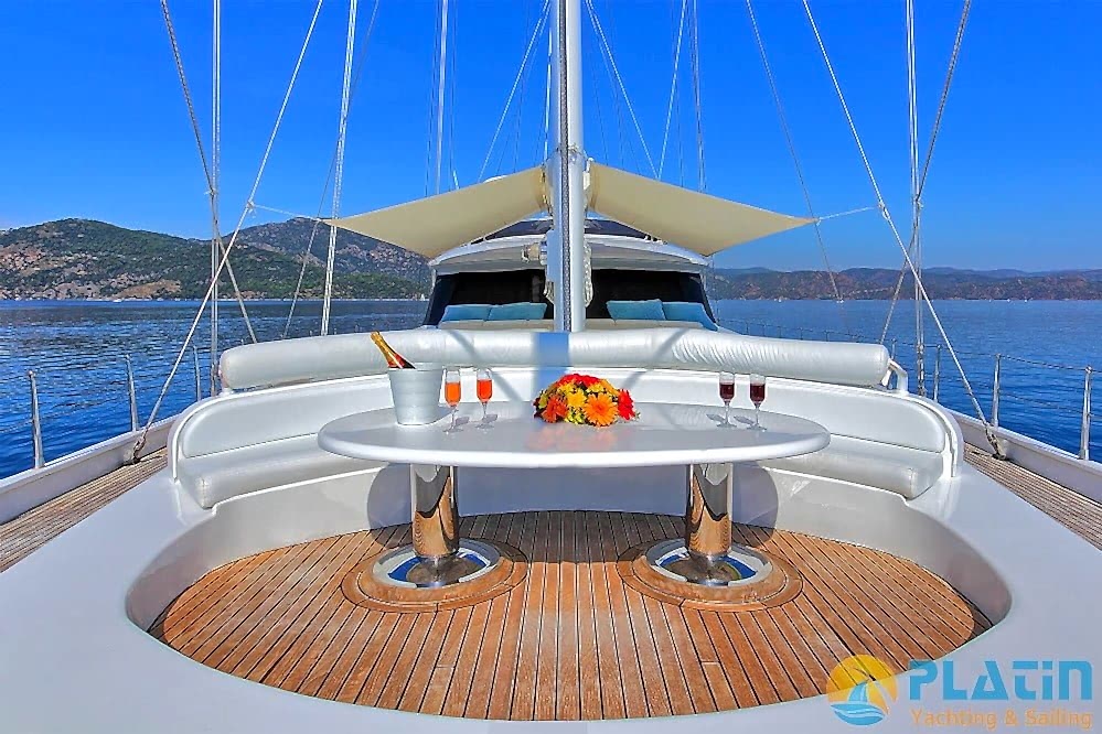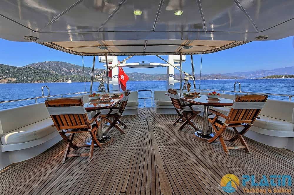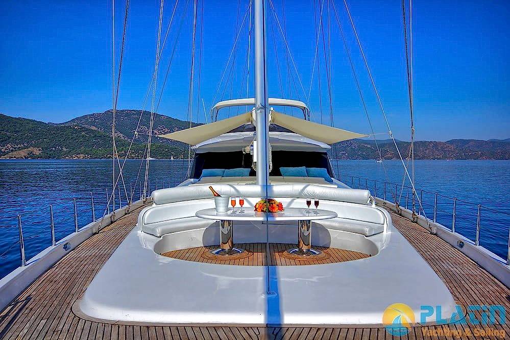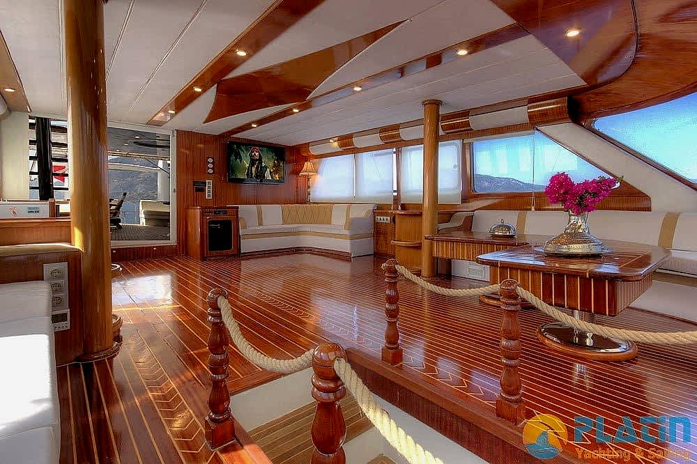 The deck areas of Angelo 2 Gulet offer a true yachting lifestyle experience with a blend of space, sun, and sea.