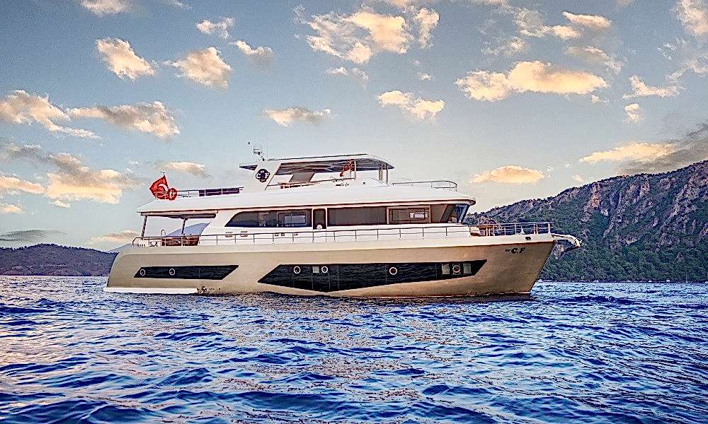 Experience the perfect blend of luxury, comfort, and adventure aboard the Motor Yacht Trawler BY C.F — a stunning 23-meter motor yacht built in 2023 and expertly designed to redefine your yachting vacation. Offering exceptional living space and modern amenities, this deluxe-class trawler is ideal for travelers seeking a sophisticated and serene blue voyage along Turkey’s turquoise coastlines, with Fethiye as its home port.