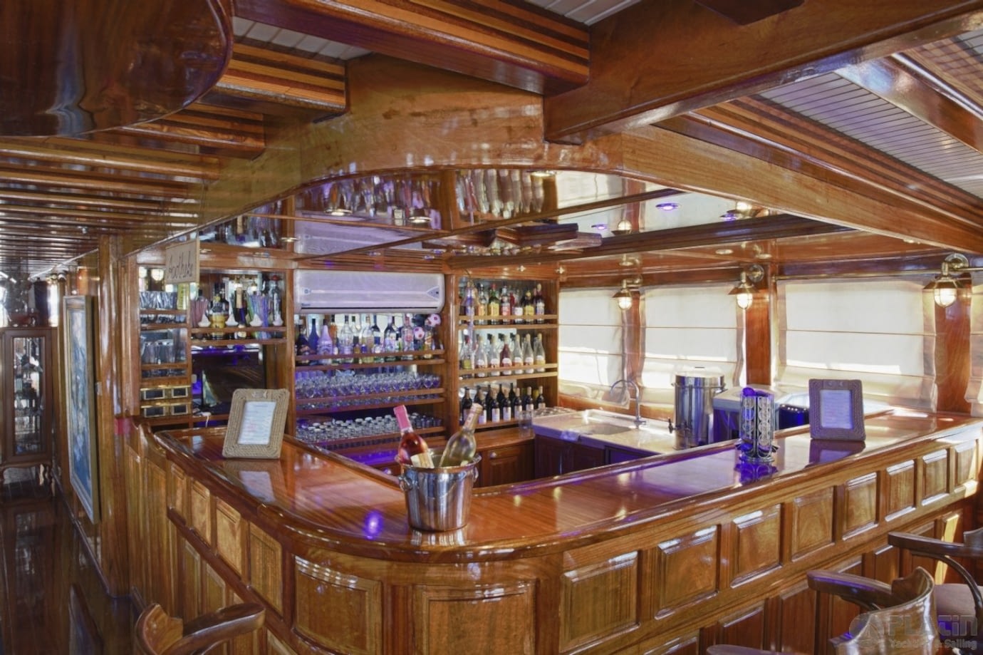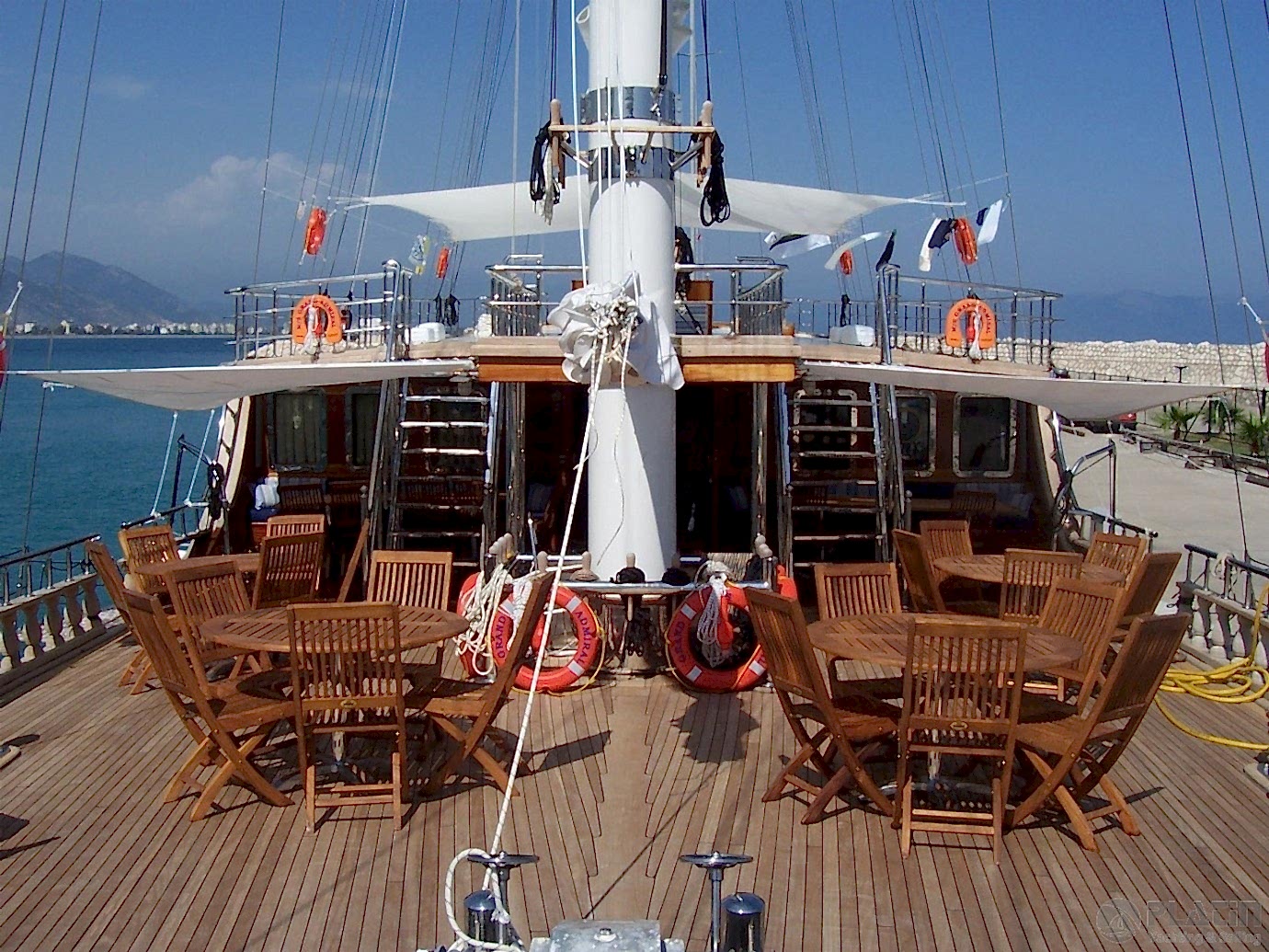 This space is perfect for enjoying fresh seafood, cocktails, and the natural beauty of the Mediterranean while sailing between stunning destinations.
