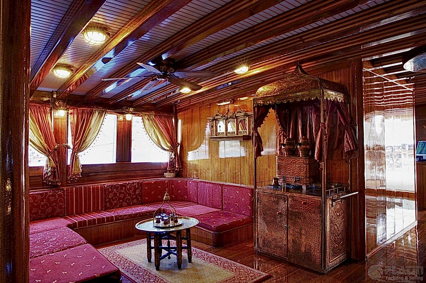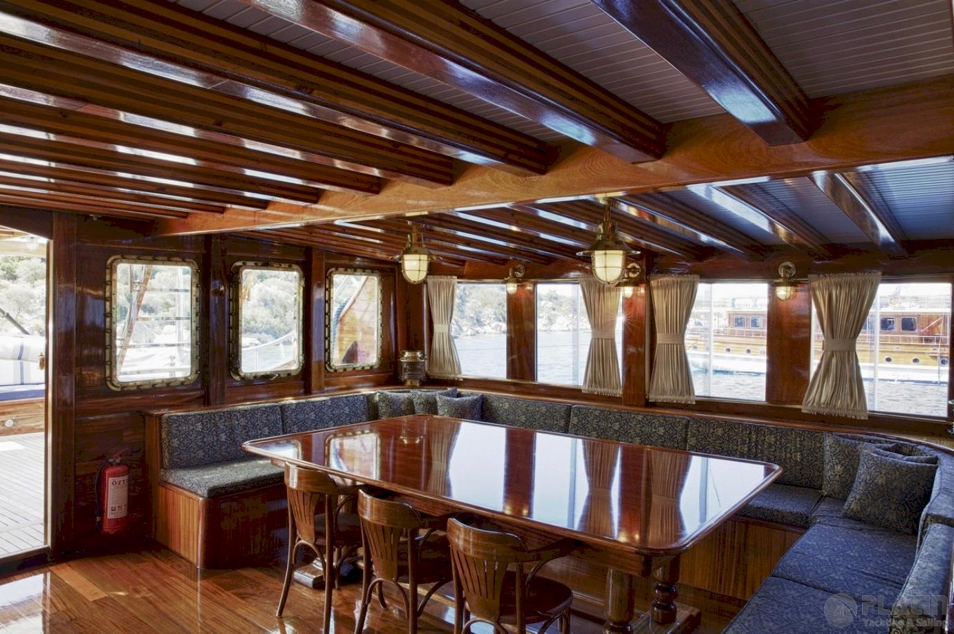 The Grand Admiral Gulet offers expansive and elegantly designed living and dining spaces, providing guests with comfort and style throughout their blue cruise experience.