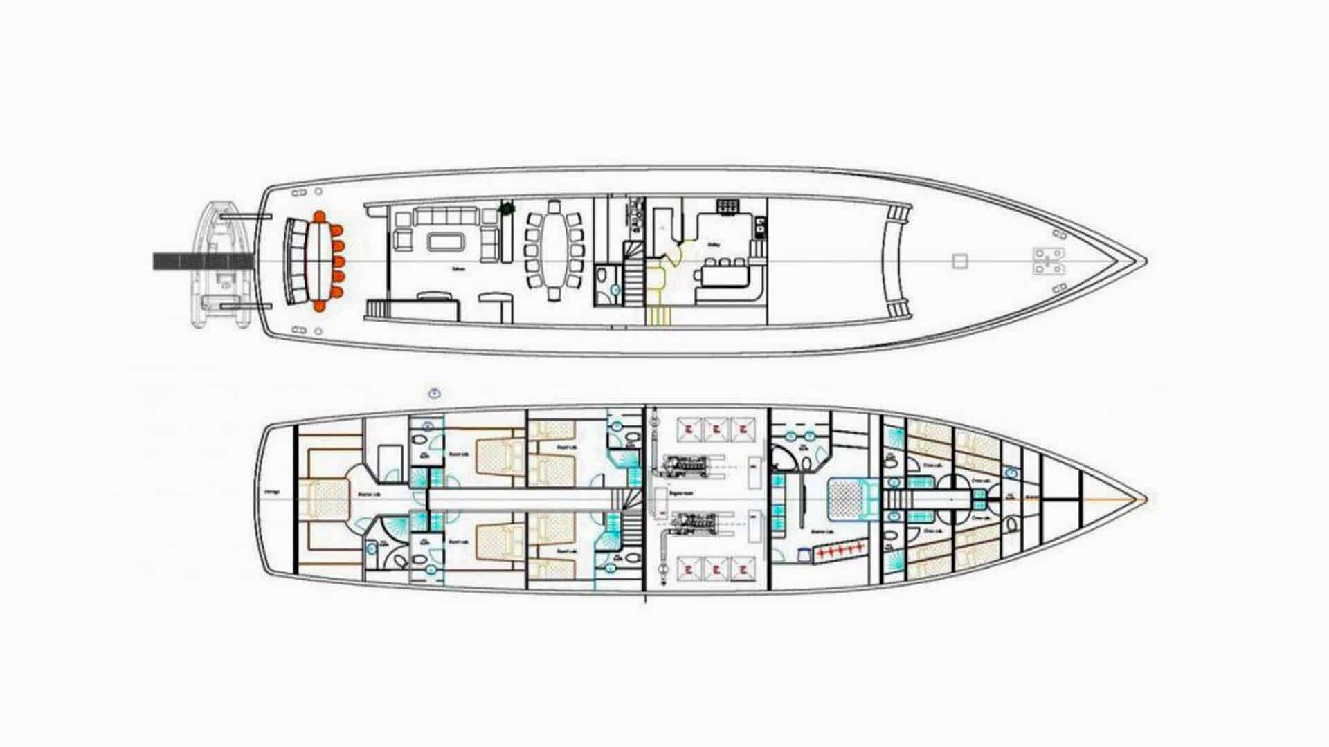 Cabins: 1 Master, 1 VIP, 2 Double, 2 Triple cabins