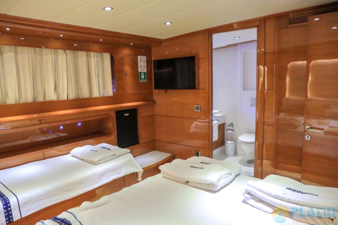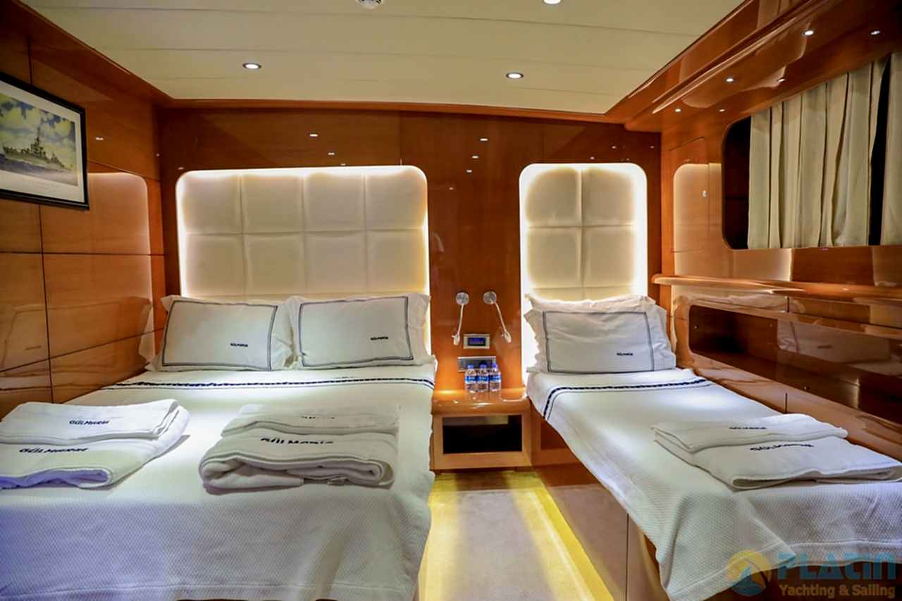 Gul Maria comfortably accommodates up to 12 guests across 6 cabins (1 master, 1 VIP, 2 double, and 2 triple).