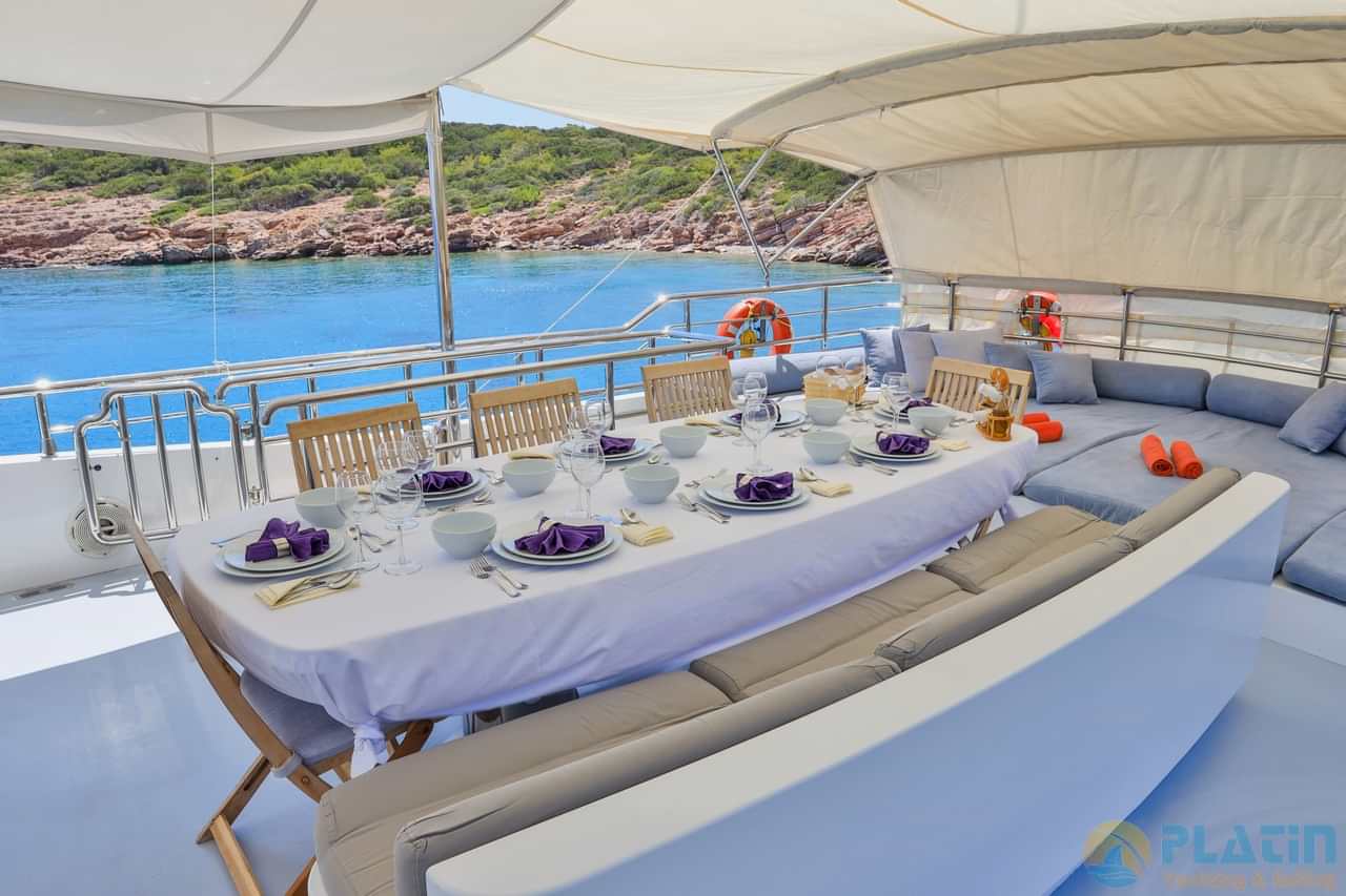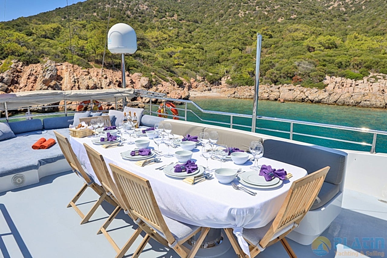 Explore the pristine waters, enjoy exquisite onboard dining prepared by a professional chef, and unwind in spacious cabins with personalized service from a dedicated crew. For more outstanding options, explore our full fleet of gulet charters.
