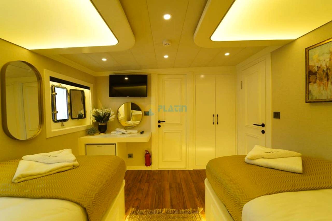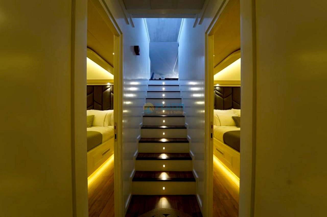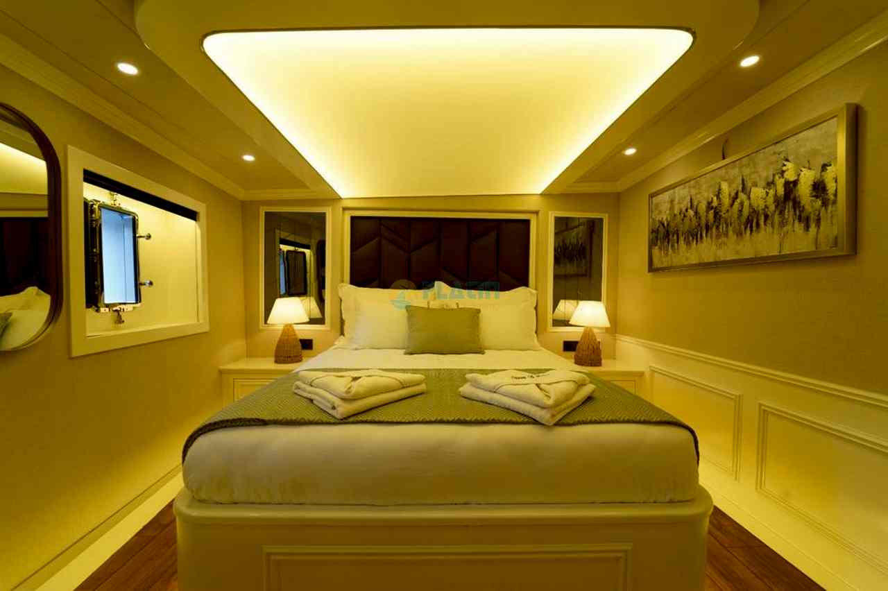 Queen of Makri offers 6 spacious and elegantly designed cabins to accommodate up to 12 guests in ultimate comfort. Each cabin is fully air-conditioned and features ensuite bathrooms, modern amenities, and stylish décor for a luxurious stay on board.