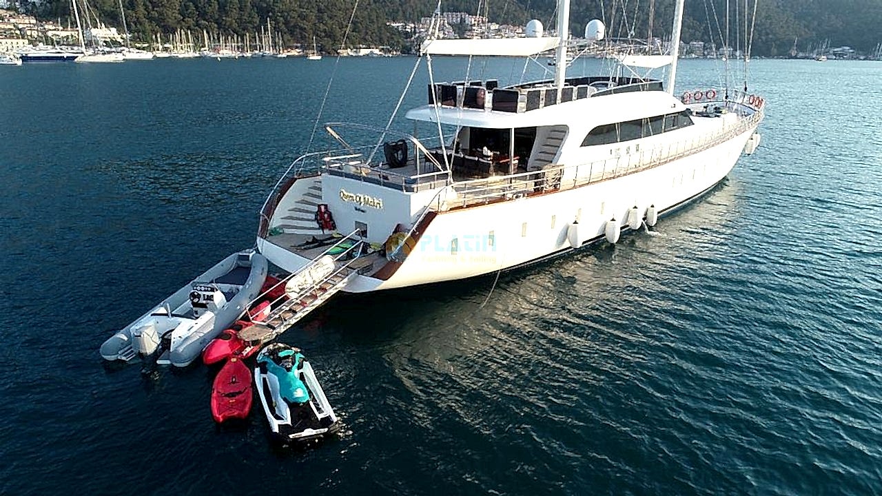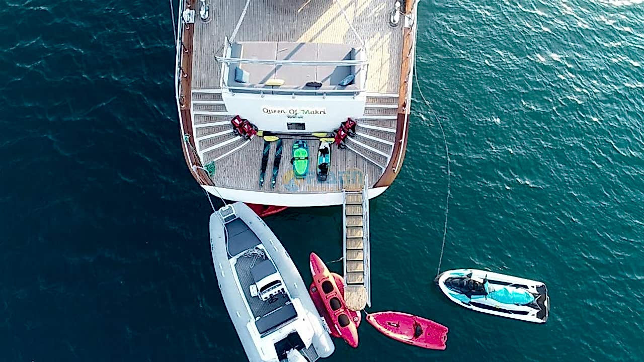 Queen of Makri combines elegance, space, and premium amenities in one of the most stunning gulets in Turkey. Ideal for families or groups of friends, she offers both relaxation and excitement on your private blue cruise holiday. From luxurious indoor areas to a deck jacuzzi and exciting water toys, this gulet ensures an unforgettable experience.
